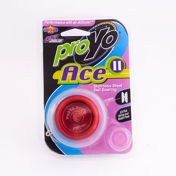 The Ace yoyo was Playmaxx's call to a miniature version of the Cold Fusion yoyo. Made of Aircraft Aluminum, it was designed to be as indestructible as possible. The 1st version (Ace I) had some issues regarding sleeping because of the interior design. Due to the first generation production problems, the Ace I is highly sought-after since not very many were sold/distributed.